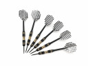 Набор дротиков для дартса DAR3071, состоящий из 6-ти дротиков с чёрно-белым узорчатым  флайтом и металлическим держателем. Каждый дротик имеет вес 19,5 грамм, что делает их подходящими для использования опытными или профессиональными игроками. Толщина хвата (баррель) составляет 7,6 мм.